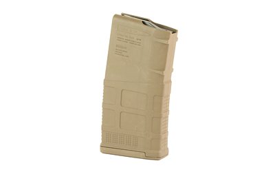 The 7.62×51 NATO (.308 Winchester) PMAG 20 LR/SR GEN M3 is a lightweight, cost effective, highly reliable magazine for SR25/M110 pattern rifles. It features true 20-round capacity, a constant-curve body, an anti-tilt follower, and a snap on impact / dust cover. The GEN M3 PMAGs feature a long-life stainless steel spring, an anti-tilt, self-lubricating follower, and constant-curve internal geometry for reliable feeding. Low profile ribs and an aggressive front and rear texture give positive control of the GEN M3 in all environments, and a paint pen dot matrix at the bottom panel of the body to allow easy marking by the end user for identification. The easy-to-disassemble flared floorplate aids extraction and handling of the magazine while providing improved drop protection, and better compatibility with tight double and triple magazine pouches. An included pop-off impact / dust cover can be used to minimize debris intrusion and protect against potential damage to the top cartridge during storage and transit. Its simple, tool-less disassembly makes for for easy cleaning and maintenance. Designed specifically for SAAMI-spec ammunition, the PMAG 20 LR/SR GEN M3 is less than half the weight of standard issue steel magazines and maintains a service life round count approximately equal to the rifle barrel itself.